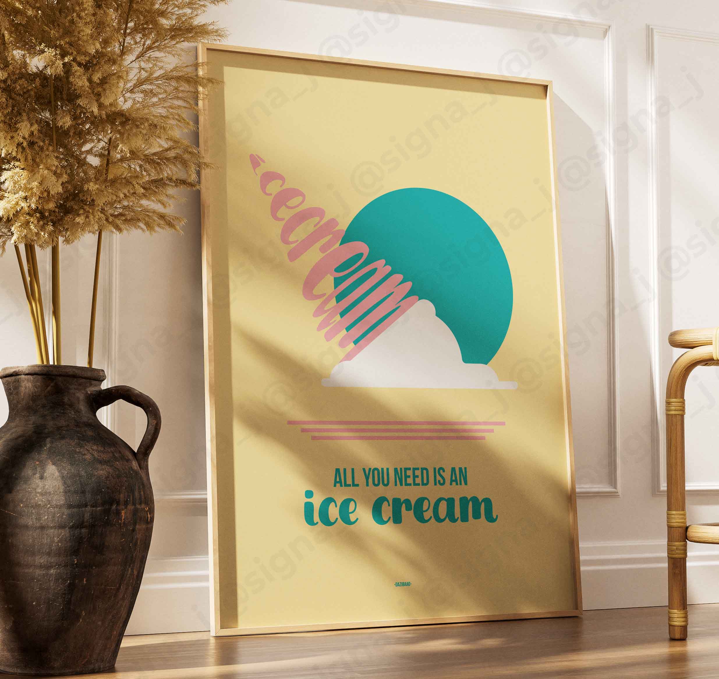 Que vous choisissiez une affiche “ice cream”, “more amor” ou “good vibes”, chaque visuel devient une pièce déco pleine de caractère, inspirée de l’esprit pop-art et de l’imagerie vintage.