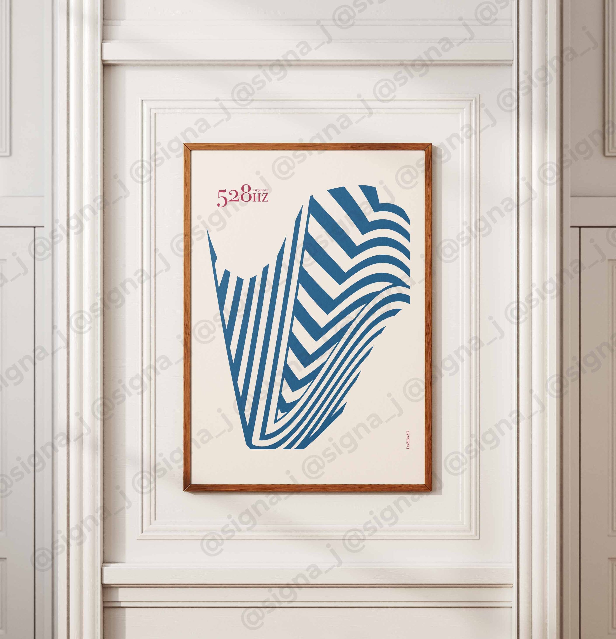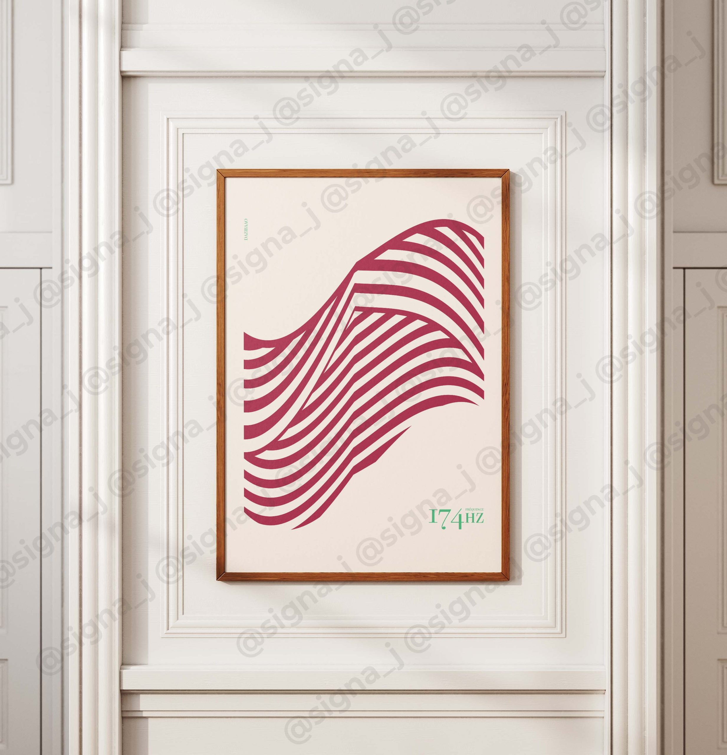 La collection FRÉQUENCES explore le mouvement, l’énergie et la vibration à travers des affiches graphiques aux lignes fluides et hypnotiques. Chaque poster représente une fréquence spécifique (174 Hz, 285 Hz, 528 Hz…), symbolisée par un motif ondulatoire moderne qui semble se déplacer et se propager sur le papier.
